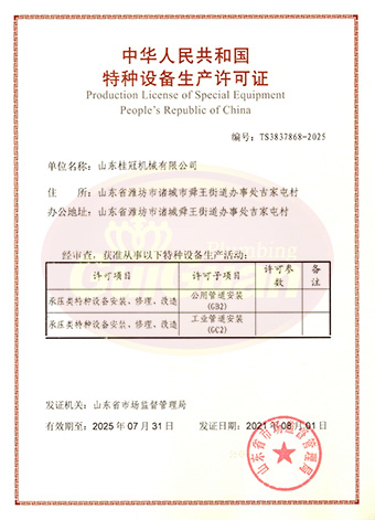 山东桂冠机械有限公司成立于2008年,注册资金1600万元,现有员工200多人,中高级技术管理人员45人,占地面积27000多平方米,生产车间面积12000多平方米。公司具备压力容器产品的设计、制造(证书编号为:TS2237703-2025)、压力管道安装(证书编号为TS3837607-2025)全套压力容器资质;通过国家ISO9001质量管理体系认证、美国ASME认证、欧盟CE认证;拥有建筑安装机电工程专业承包叁级资质、建筑工程施工总承包叁级资质及对外贸易经营出口权…